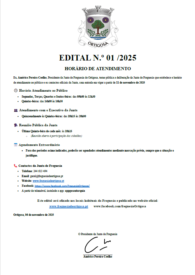 O Táxi 65+ é um serviço promovido pelo Município de Leiria que disponibiliza o transporte de táxi para pessoas com mais de 65 anos. Destina-se a deslocações a consultas ao Hospital ou aos Centros de Saúde, tratamentos, exames complementares de diagnóstico e internamentos. Podem beneficiar deste serviço os residentes no concelho de Leiria com idade superior a 65 anos e rendimentos iguais ou inferiores ao valor do IAS/2025 (522.50 euros). As deslocações por motivos de saúde são gratuitas, incluindo a viagem de ida e volta. Cada beneficiário recebe um livro com 12 tickets, correspondentes ao número máximo de viagens anuais permitidas. As utilizações são registadas no momento da marcação do transporte.A chamada de táxi será efetuada para os contactos telefónicos disponíveis para este serviço, até um Centro de Saúde, Hospital ou Clínica Médica, situados no concelho de Leiria, tal como o trajeto de regresso. O Táxi 65+ encontra-se disponível 24 horas por dia. O serviço é assegurado por duas empresas: “Táxis Digital”: 244 832 555 / 919 700 333 “Táxis Ideal”: 244 815 900 / 916 500 100 / 969 944 904.Os percursos estão organizados em duas zonas (Zona 1 e Zona 2). A freguesia de Ortigosa integra a Zona 2.Para beneficiar do programa Táxi 65+, os interessados que cumpram os requisitos devem dirigir-se ao Gabinete de Atendimento Social da Câmara Municipal ou à respetiva Junta de Freguesia, onde deverão preencher um formulário próprio e apresentar o Cartão de Cidadão, bem como os comprovativos de rendimentos. As candidaturas podem ser submetidas por correio eletrónico, através do endereço cmleiria@cm-leiria.ptO formulário encontra-se disponível no Balcão Virtual do Município, no seguinte endereço: https://www.cm-leiria.pt/apoio-ao-municipe/balcao-virtual/documentos/formularios/desenvolvimento-social